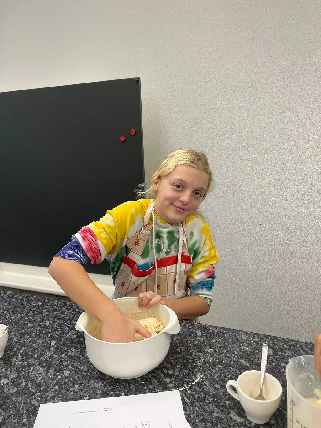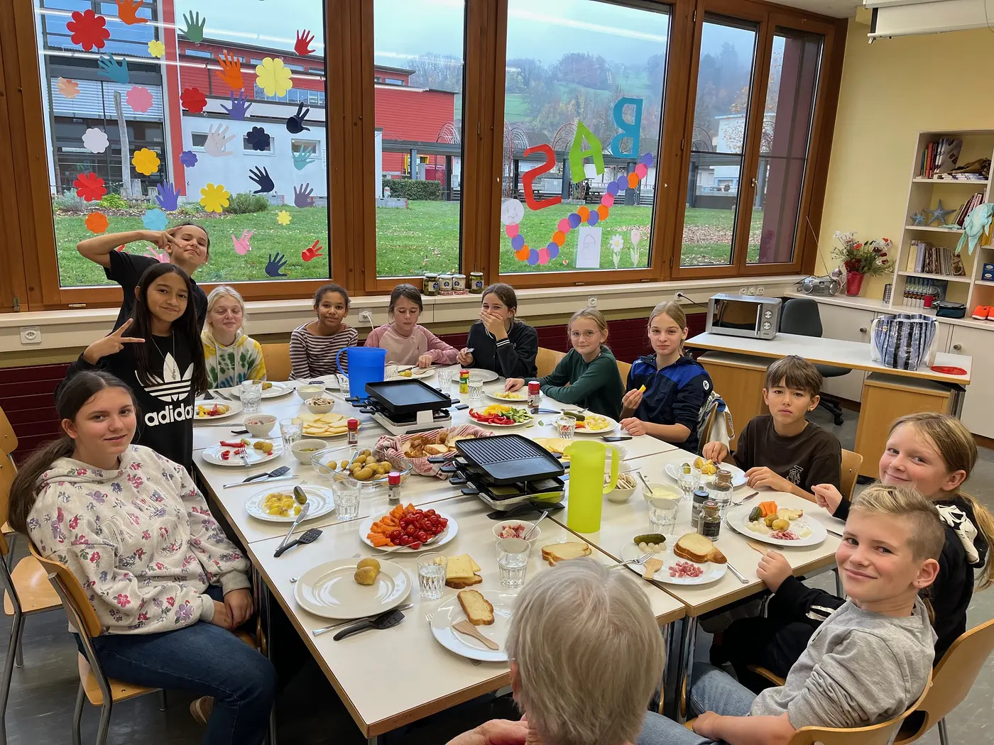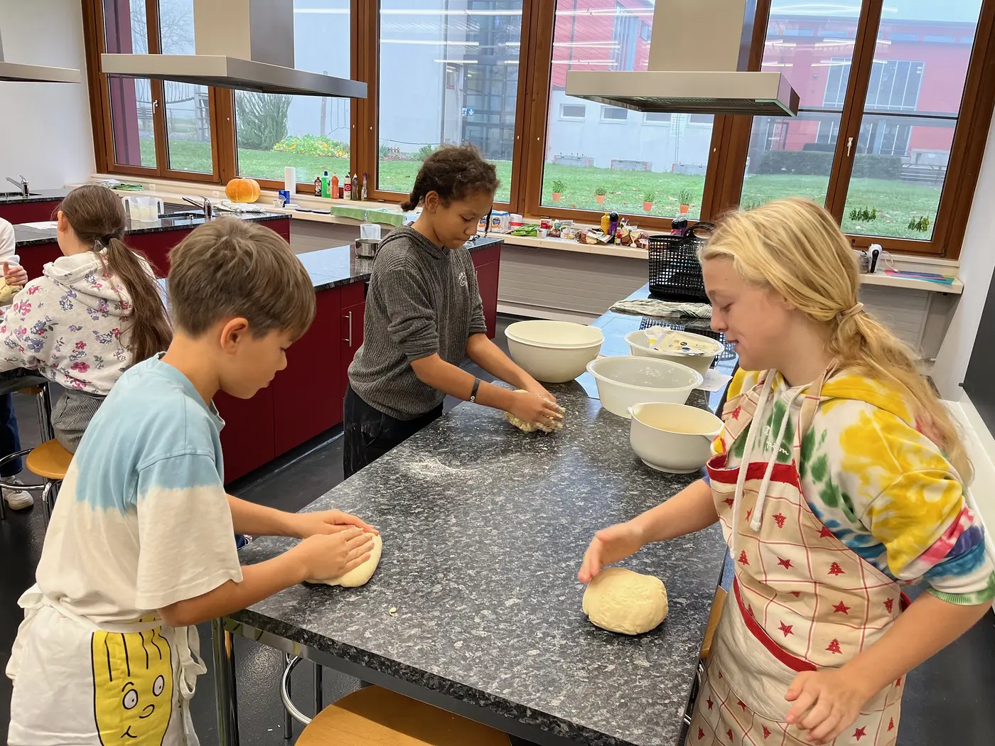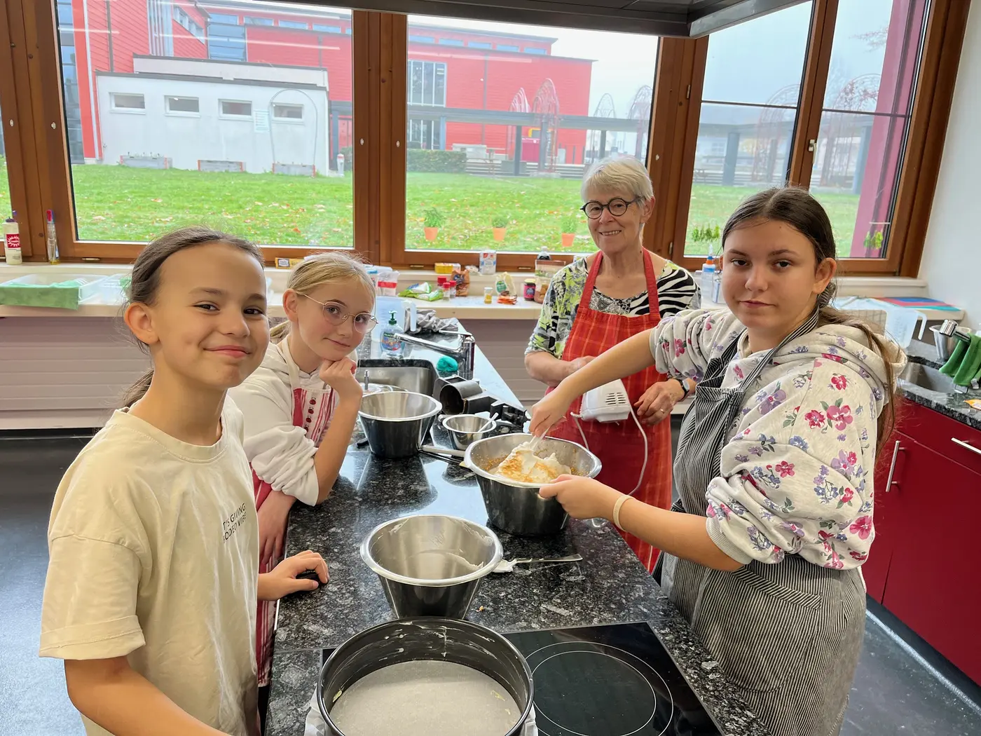 An zwei Tagen sind wir mit dem Fahrrad nach Leibstadt gefahren. Wir haben Schweizer Spezialitäten gebacken. Wir haben Lebkuchen, St.Galler Klostertorte, Thurgauer Apfelkuchen und verschiedene Brote gebacken und zum Abschluss Raclette gegessen. Ich habe mit meiner Gruppe Rüeblitorte gebacken.