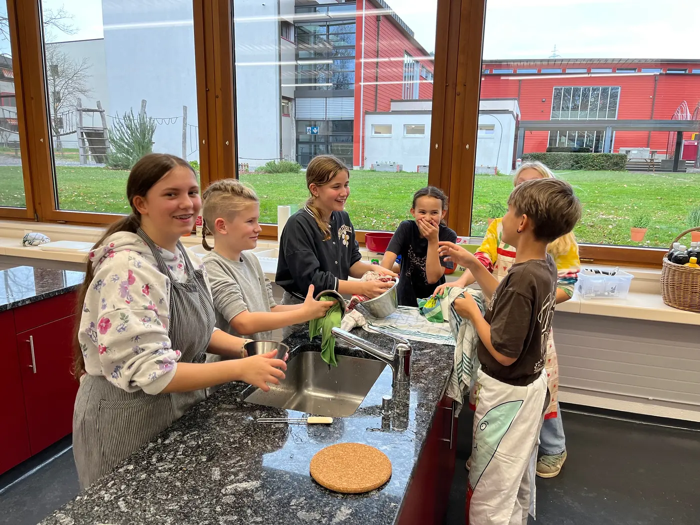 Nach dem Räbeliechtli-Umzug haben wir Kürbissuppe und Brot und Kuchen serviert. Es hat mir sehr Spass gemacht, mit meinen Kollegen zu backen und zu kochen. Ich wünschte, ich könnte das nochmals erleben.