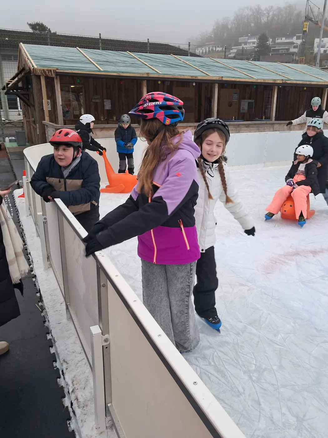 Am 4. Dezember sind wir, die Klassen 5a, 5b und der 6. Klasse, nach Döttingen zum Schlittschuhlaufen gefahren. Die Busfahrt war sehr heiss und eng, trotzdem kamen wir gut gelaunt am Ziel an. Von der Haltestelle aus marschierten wir den Weg zur Schule hoch, wo wir die nächsten Stunden auf dem Eisfeld verbringen und uns austoben durften.