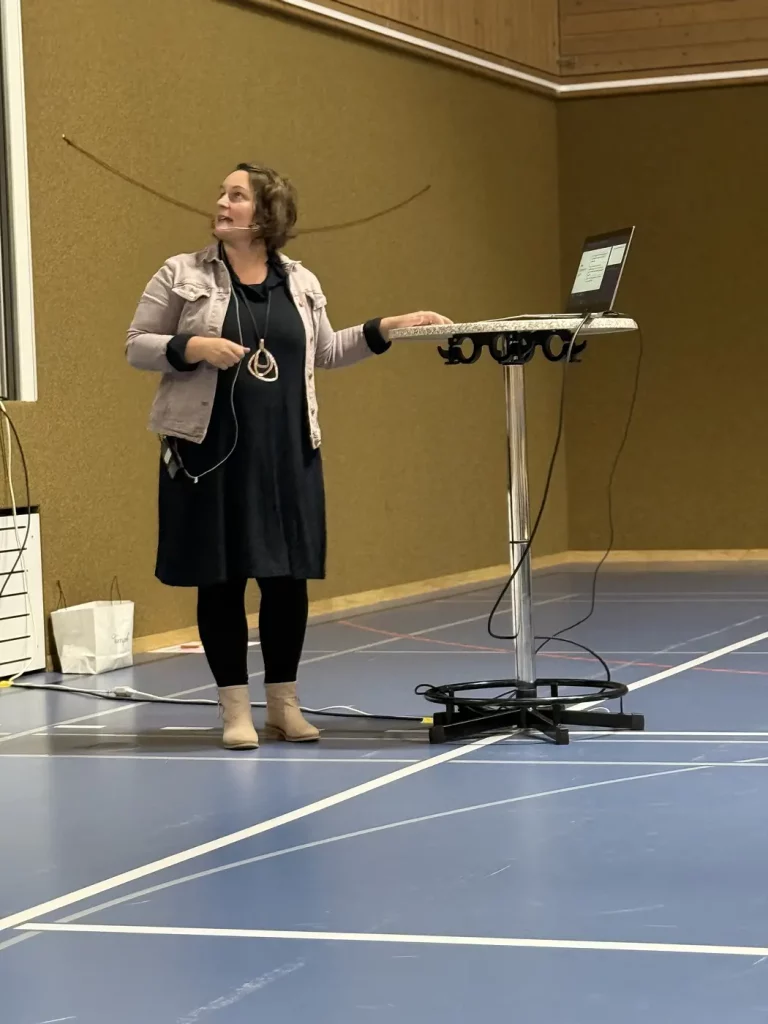 Durch den Abend führte Frau Stingel, Logopädin der Schule, die mit viel Herzblut und Fachwissen durch das Programm leitete. Nach der herzlichen Begrüssung durch die Schulleiterin stieg Frau Stingel direkt ins Thema ein. An einem fiktiven Beispiel zeigte sie auf, wie die Idee zu diesem Abend entstanden ist und welche entscheidenden Faktoren wie ein „Turbo“ für Konzentration, Lernfreude und seelische Stärke wirken können.