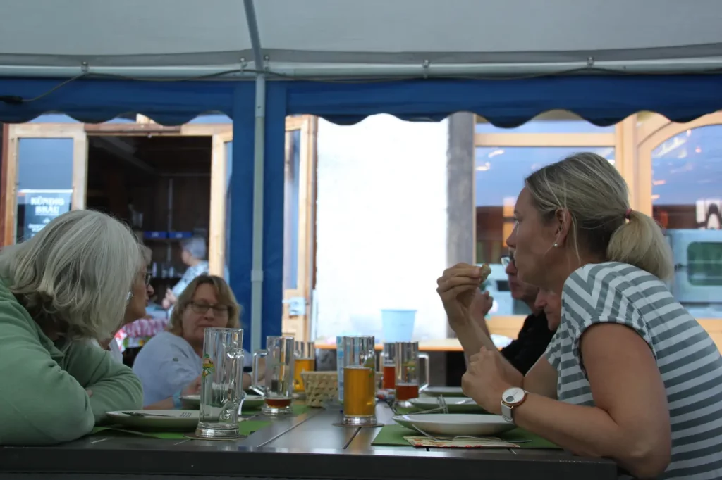 Im Anschluss folgte der gemütliche Teil des Tages: Bei einem feinen Essen in geselliger Runde konnten wir uns stärken und dazu selbstverständlich das hauseigene Bier probieren. Angeregte Gespräche, gemeinsames Lachen und die entspannte Atmosphäre trugen wesentlich dazu bei, dass der Nachmittag für alle zu einem besonderen Erlebnis wurde.