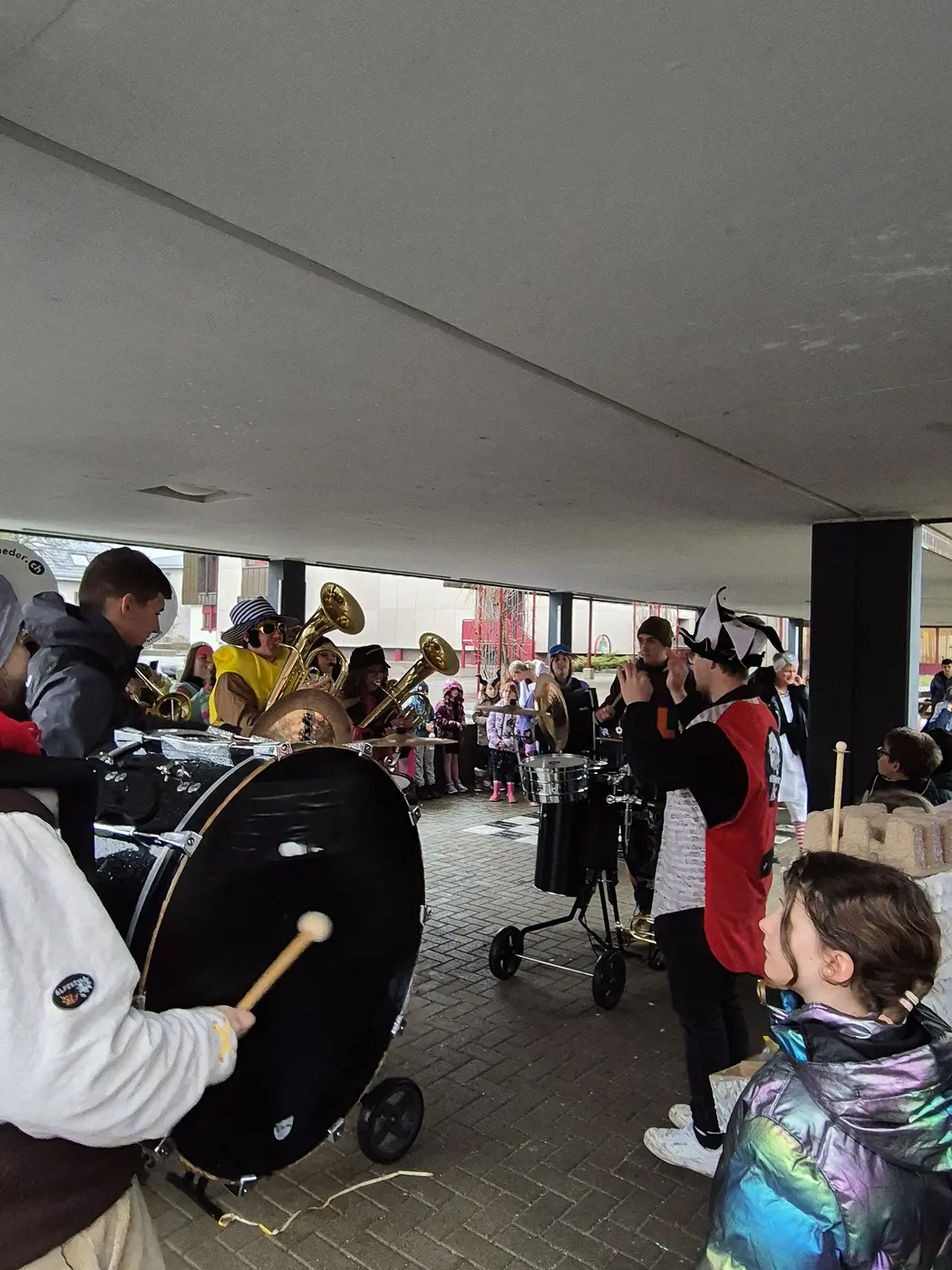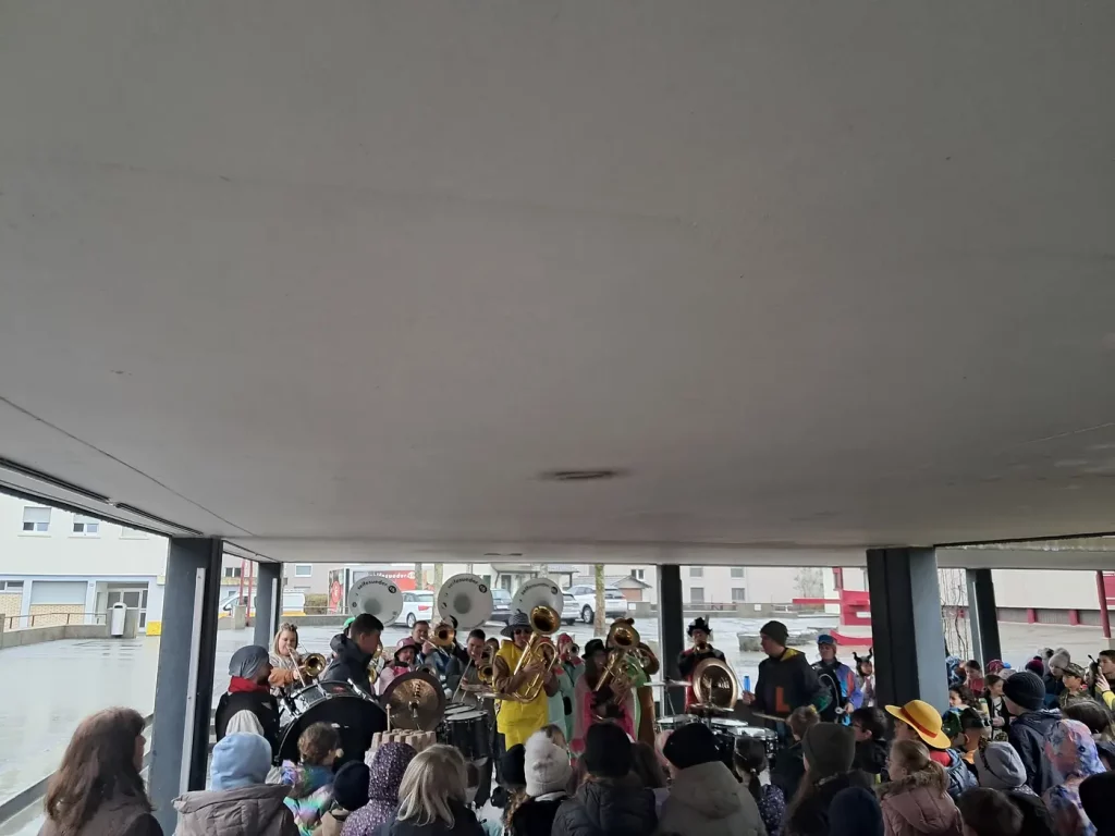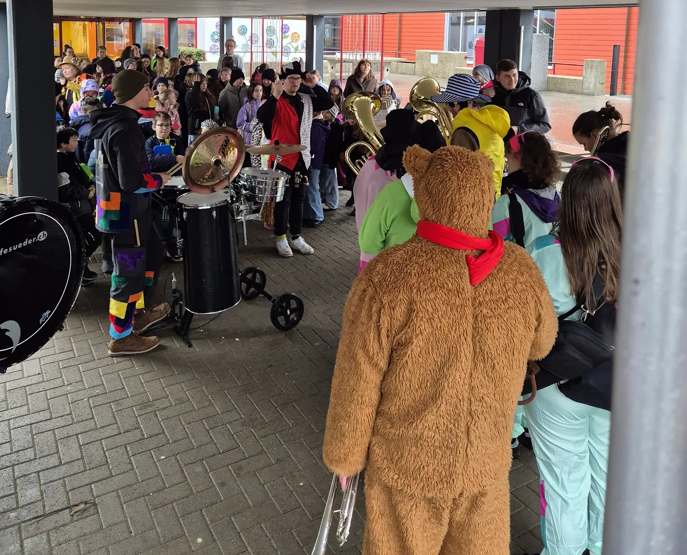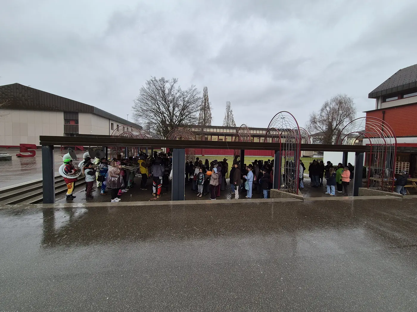Am 12.2.26 läuteten die Seifesüder die diesjährige Fasnacht auf dem Schulhof in Leibstadt ein. Sie wurden von vielen grossen und kleinen Narren empfangen.