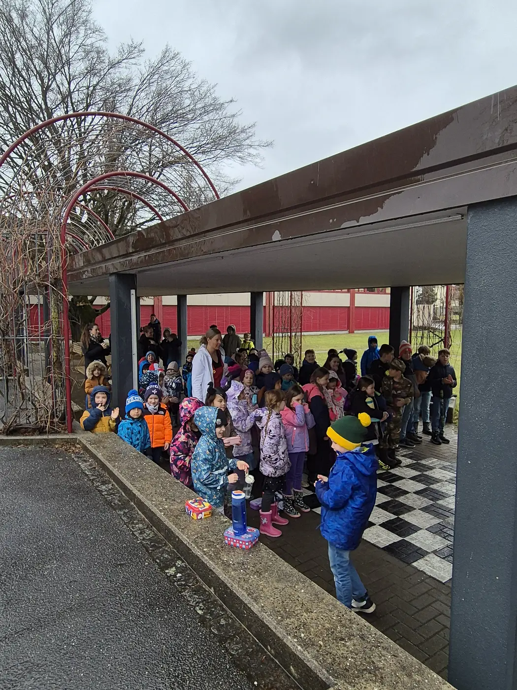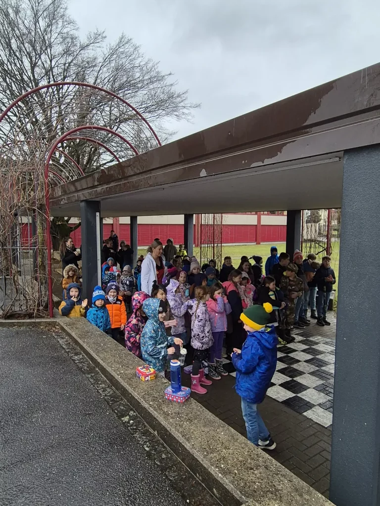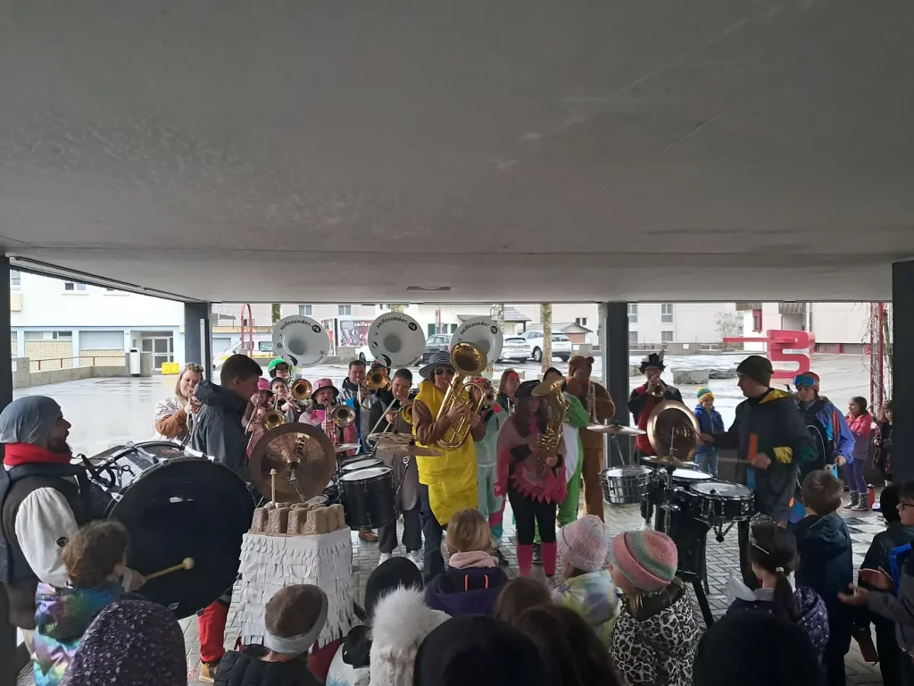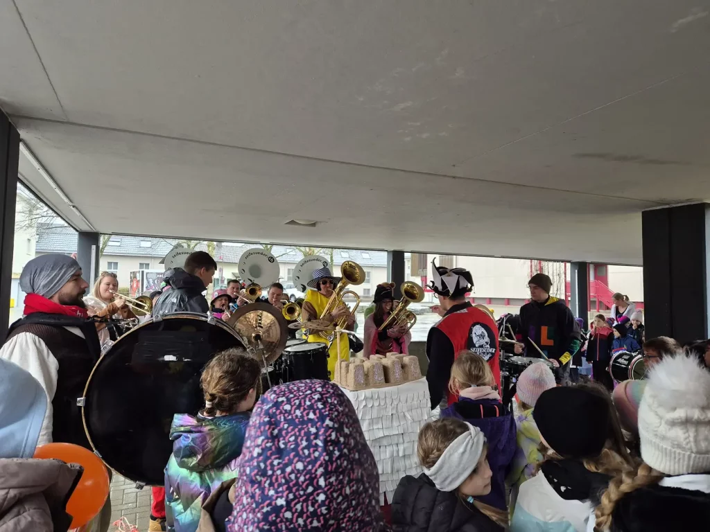 Am 12.2.26 läuteten die Seifesüder die diesjährige Fasnacht auf dem Schulhof in Leibstadt ein. Sie wurden von vielen grossen und kleinen Narren empfangen.