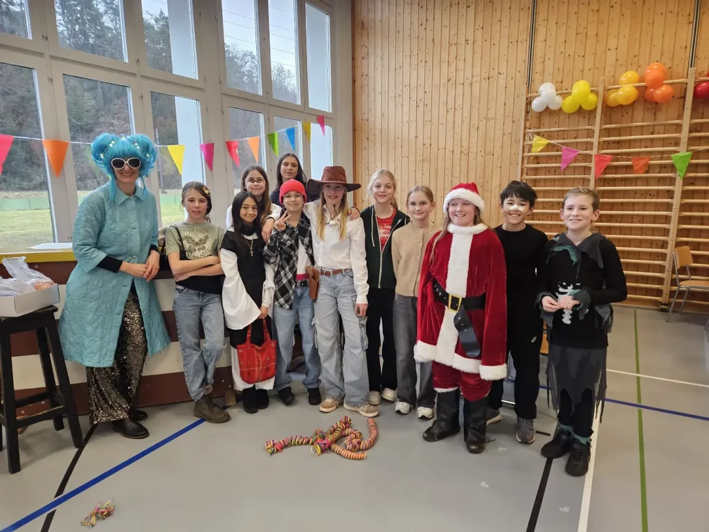 Überall glitzerte und funkelte es: Konfetti wirbelte durch die Luft, geschminkte Gesichter strahlten mit fantasievollen Kostümen um die Wette und auf dem Hallenboden sammelten sich bald bunte Spuren der ausgelassenen Feier. Da es draussen in Strömen regnete, musste der geplante Umzug zwar abgesagt werden – der guten Laune tat dies jedoch keinerlei Abbruch.